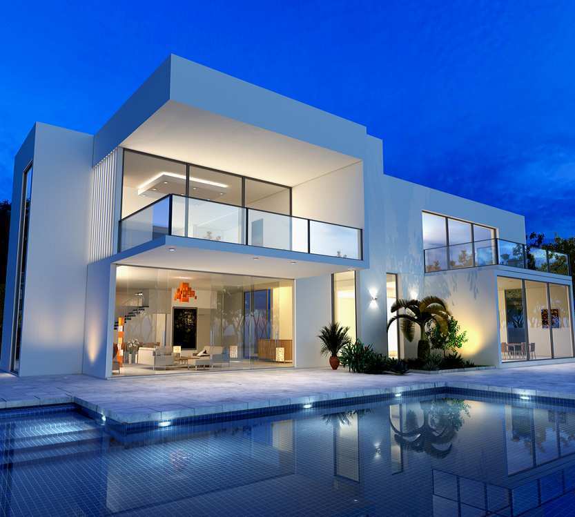 Một số thiết kế nhà khác nhau của phong cách hiện đại hoàn toàn dựa trên xu hướng kiến trúc và xây dựng hiện đại với mảng thép và kính thông thường trong việc tạo ra các cấu trúc này.